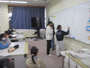 前半は、3学期の振り返りや6年生卒業後の仮の友長を決めたりしました。