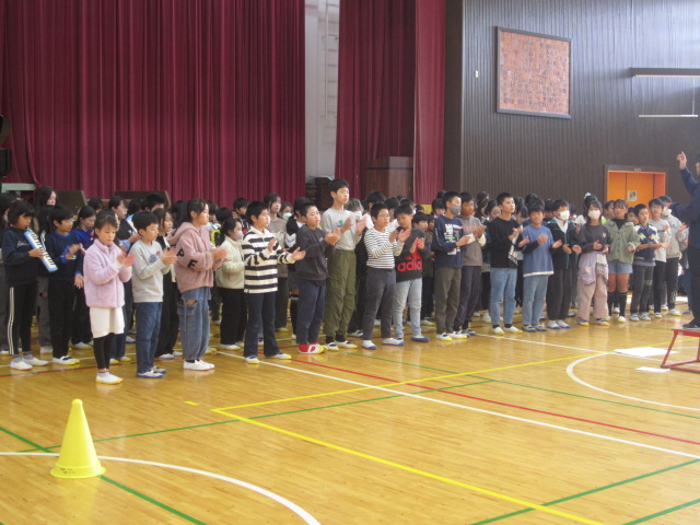 5年生は、市の音楽会で発表する歌とクラッピングの演奏を行いました。