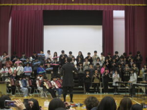 このほかにも、運動会で使った曲「パイレーツ・オブ・カリビアン」のテーマ曲を合奏したり、家庭科で制作したプレゼントを届けたりして、保護者の方への感謝の気持ちを伝えました。