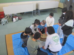 守山市の回想法ボランティアの方々にお越しいただき、昔のくらしについて体験を交えながらのお話をしていただきました。