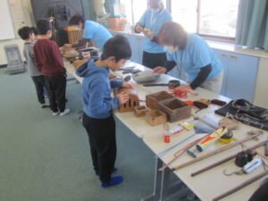 懐かしい道具がそろっています。子どもたちにとっては、「おじいちゃんのお家で見たことある」「何に使うの?」など思い思いの声をあげていました。